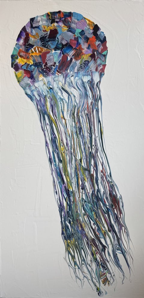 Collection méduses et imaginaire Pensées colorées Comme une méduse dans l’océan de mes rêves, je flotte entre les courants, portée par des pensées colorées qui dansent dans la lumière. - 18x36 - 1780$ Méduse libre Fraguement d’ombre et de lumière en liberté 40x60 - 3300$ Colorée comme nos idées “Comme des méduses dans l’eau claire, nos idées dansent — libres, changeantes, éclatantes de couleurs que rien ne peut capturer - 40x60 - 3300$ Liberté Liberté Laissez-moi aller, je remonte, je m’envole - 24x24 - 1500$ La médusée 30x40 - 2300$ Toi et moi Pour nous, de nous… Avec amour 30x40 - 2300$ Attirance Soyez l’énergie que vous souhaitez. 60x15 - 2475$ Suis-moi Motiver, transmettre l’énergie, répandre l’espoir. 40x30 - 2300$ En connection 40x30 - 2300$ Laissez-moi être Je suscite la peur et la fascination. Je suis simple et complexe. Laissez moi être ce que je suis... 30x40 - 2300$ Plus haut, plus loin... Avec légèreté, avec joie, même dans le noir, je rayonne. Laisse-moi aller plus haut, plus loin 30x24 - 1780$ Savoir rebondir Parcourir le monde, voguer avec élégance la tête pleine d’idées, de souvenirs, d’expériences. 40x30 - 2300$ Liberté Laissez-moi aller, je remonte, je m’envole. 24x24 - 1500$ Doux souvenris D’où je suis je vous envoie des cartes postales et je vous raconte. 30x40 - 2300$ Ce qui est... Depuis 650 millions d’années, la méduse a survécu sans cerveau. Laissons donc l’énergie divine nous bercer... 24x24 - 1500$ Me contacter